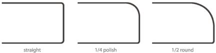 Most popular Edges for bathroom, kitchen, etc. Profiles shown are on 2cm and 3cm